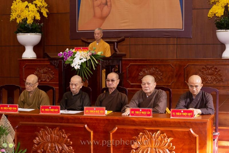 Phiên họp do HT.Thích Trí Quảng – Đệ nhất Phó Pháp chủ kiêm Giám luật HĐCM, Trưởng BTS GHPGVN TP.HCM chủ trì, cùng với sự hiện diện của Chư tôn đức Thường trực Ban Trị sự GHPGVN TP.HCM, Ban chuyên ngành trực thuộc PG TP, Ban Trị sự PG 24 quận huyện.