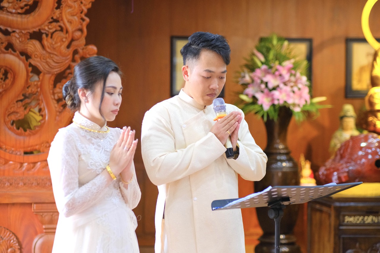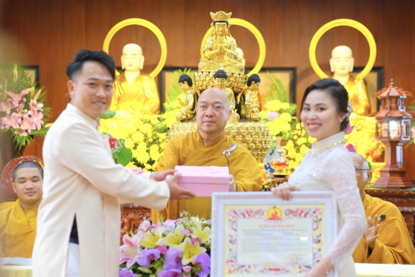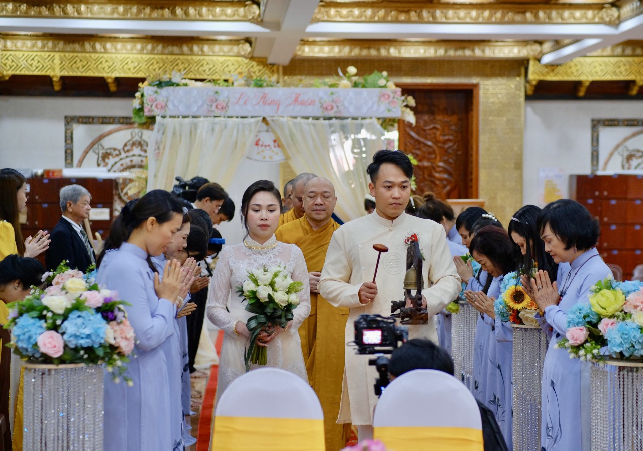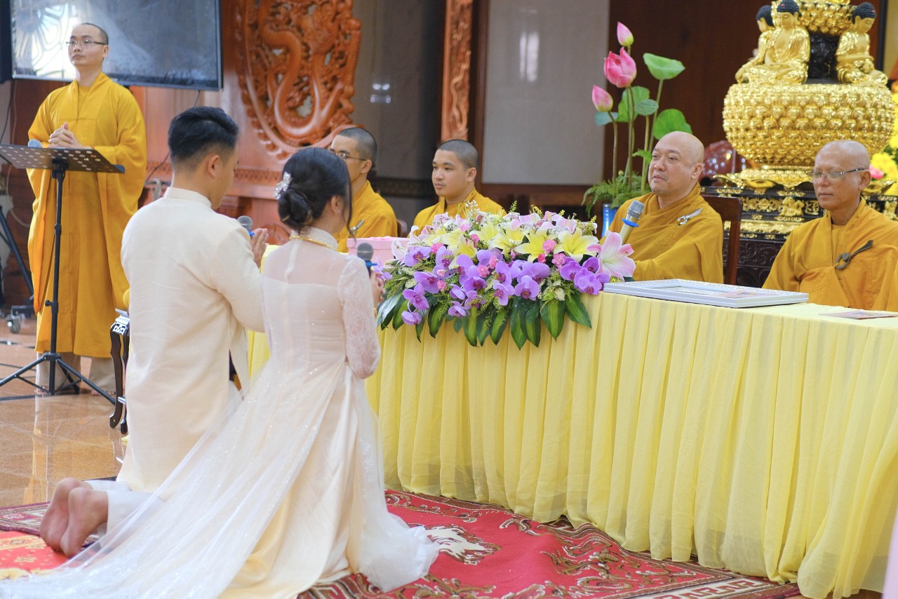 Luc 10:30, ngày 2-10-2022 tại chùa Giác Ngộ, Q.10, Thượng tọa Thích Đức Trường cùng chư Tăng chúng minh lễ Hằng thuận và đôi lời sách tấn về bổn phận của người làm vợ, làm chồng, cũng như giữ gìn chữ hiếu với mẹ cha hai họ theo lời Phật dạy.