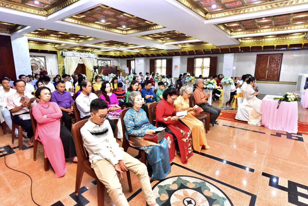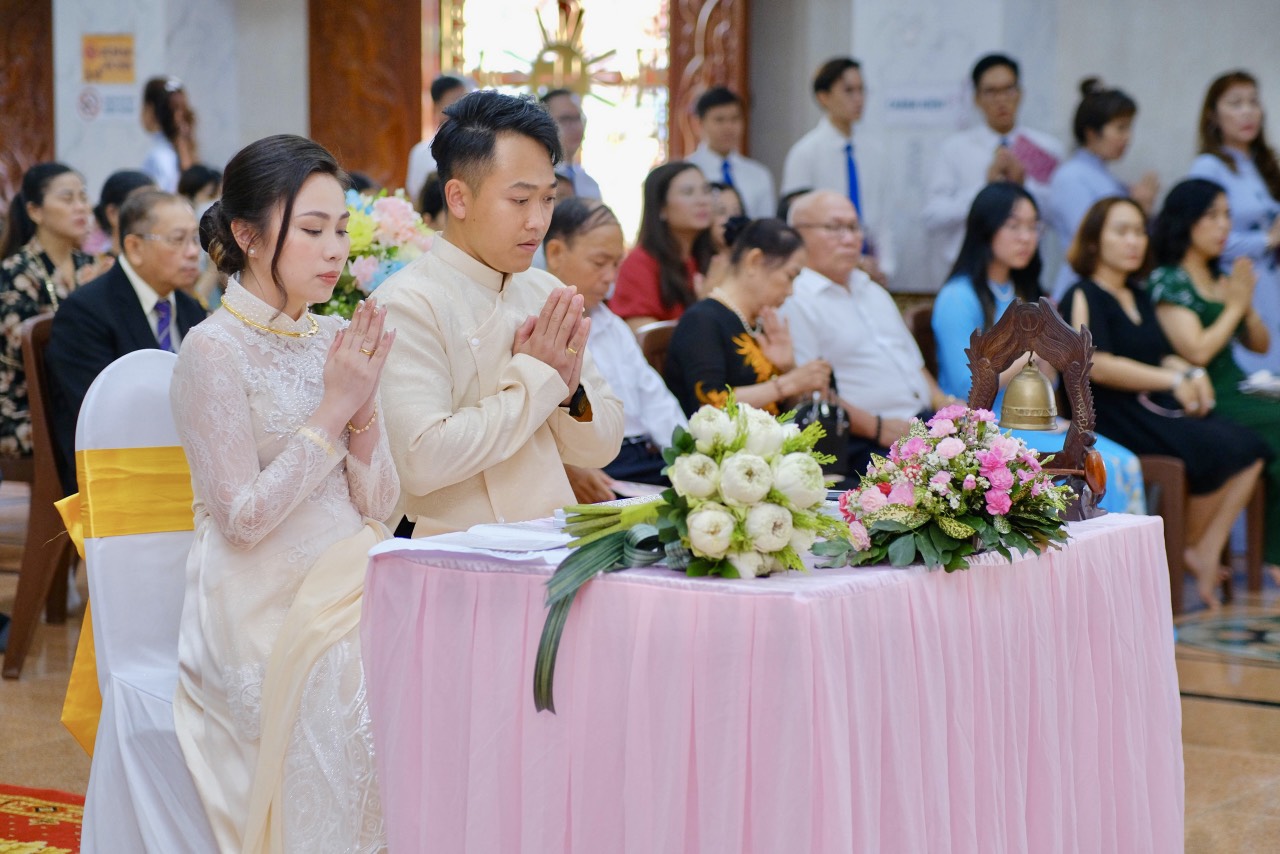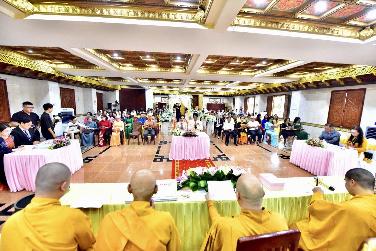 Luc 10:30, ngày 2-10-2022 tại chùa Giác Ngộ, Q.10, Thượng tọa Thích Đức Trường cùng chư Tăng chúng minh lễ Hằng thuận và đôi lời sách tấn về bổn phận của người làm vợ, làm chồng, cũng như giữ gìn chữ hiếu với mẹ cha hai họ theo lời Phật dạy.