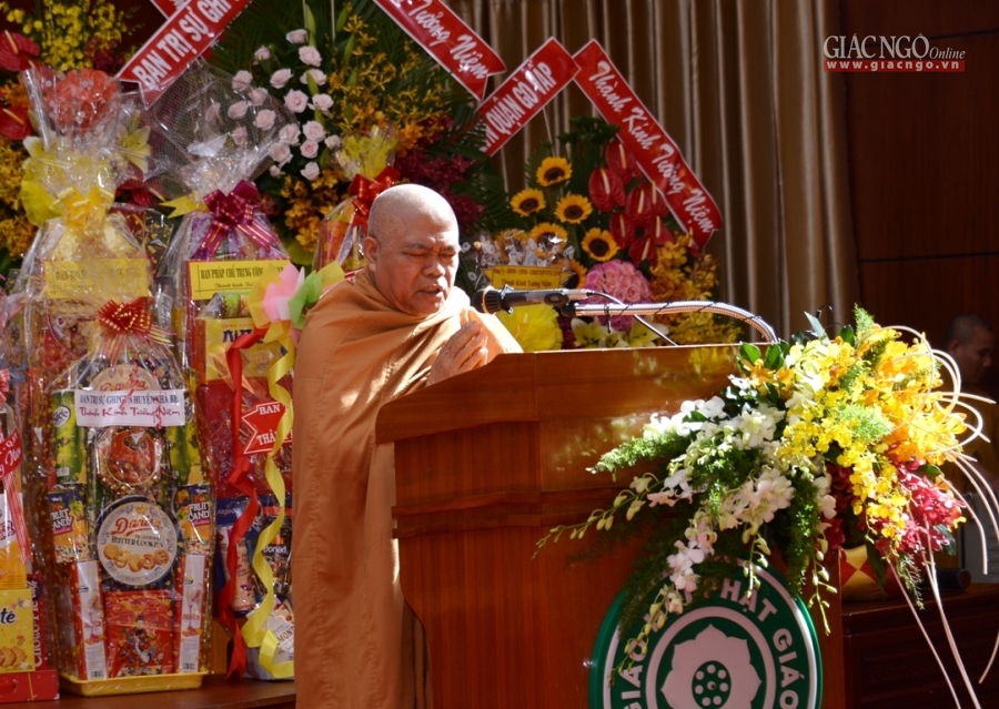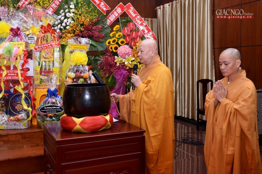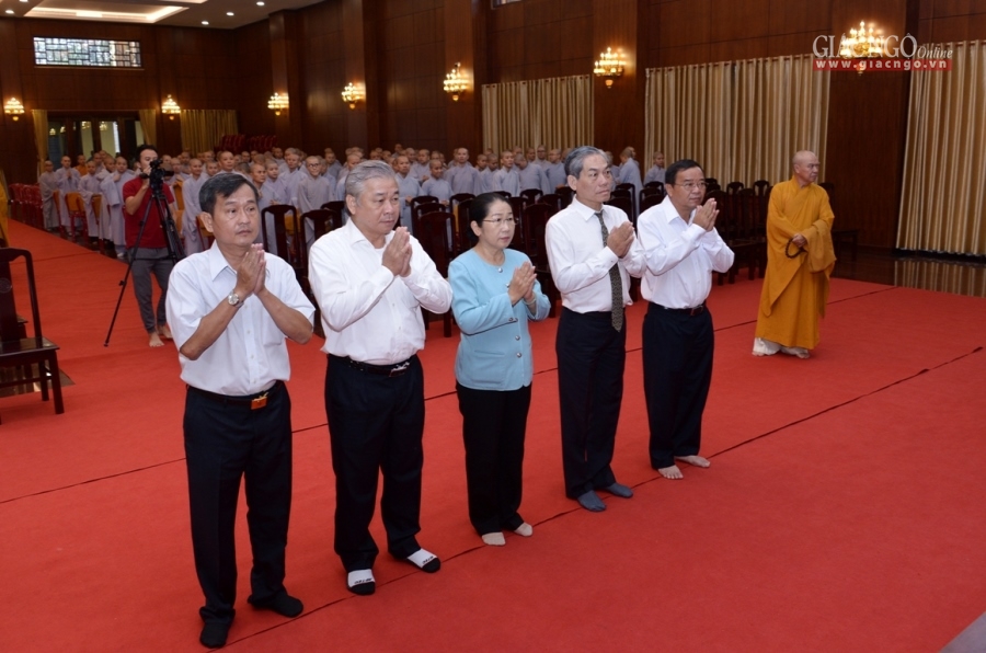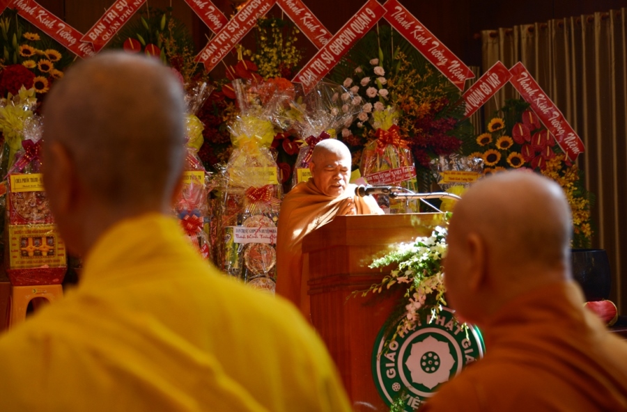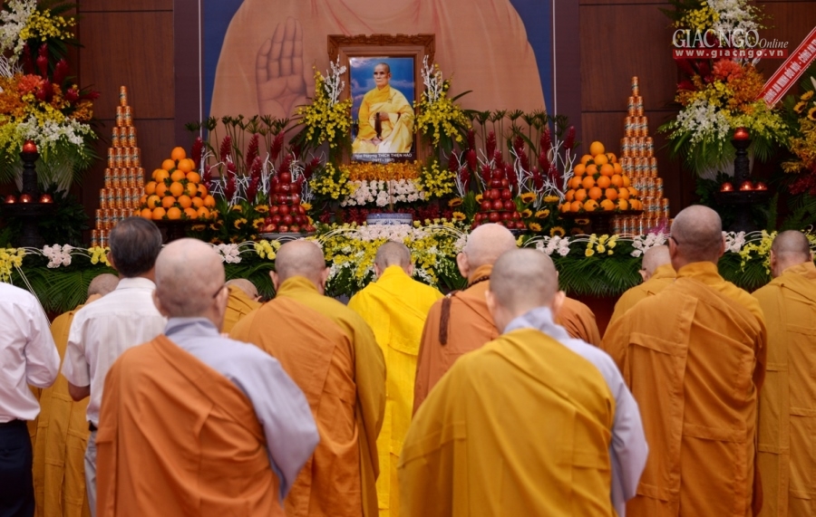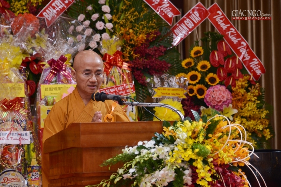 “Thay mặt chư tôn đức trong giai đoạn đầu của THPG TP.HCM, HĐTS GHPGVN và hiện nay, con/trò dâng lời bày tỏ tấm lòng của thế hệ sau nối tiếp thế hệ chư tôn đức tiền bối, tiền nhân có đôi lời tưởng niệm… Trong thời kỳ đất nước còn chiến tranh thì trách nhiệm công dân của Hòa thượng đối với nước, với dân đều tròn vẹn; và với hình thức của một tu sĩ Phật giáo, Hòa thượng hết lòng phụng sự cho Đạo pháp với sứ mạng thiêng liêng của người con Phật…”, Hòa thượng Phó Chủ tịch HĐTS nhấn mạnh.