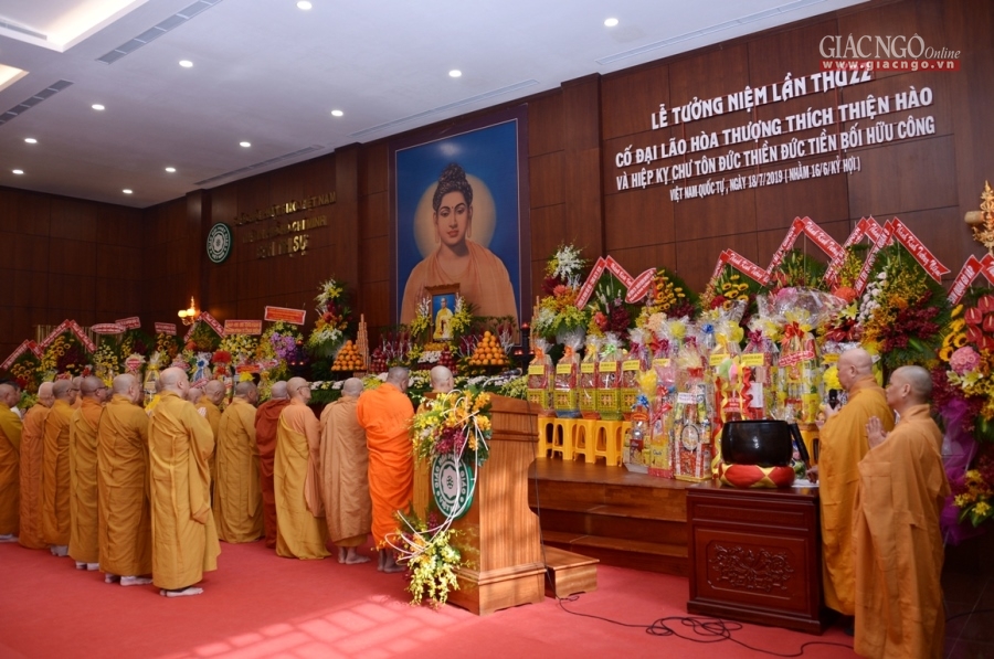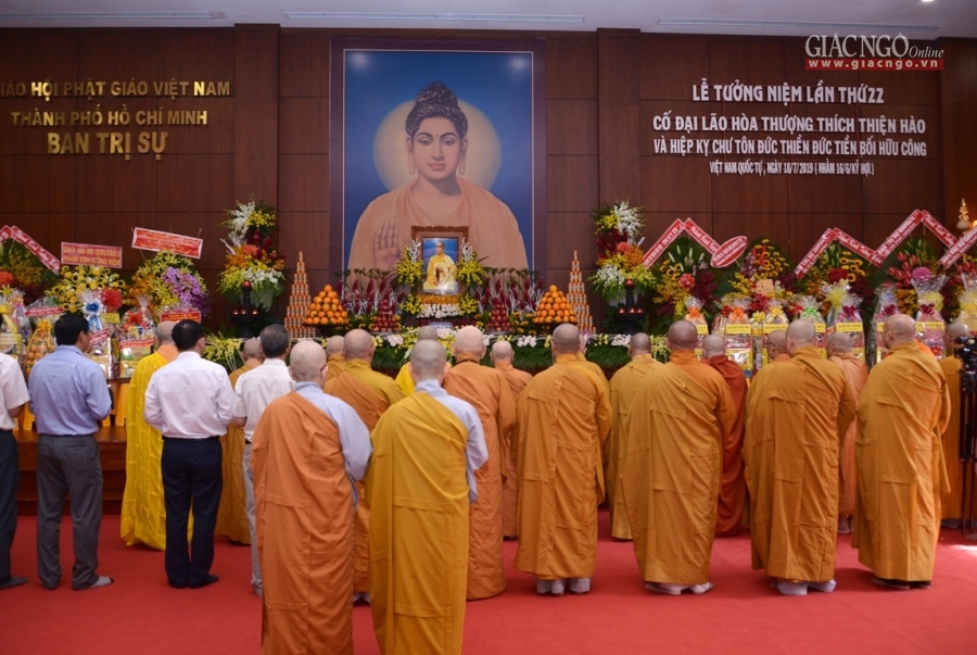Tại trụ sở Ban Trị sự - Việt Nam Quốc Tự (P.12, Q.10), TƯGH và BTS GHPGVN TP.HCM trang nghiêm tổ chức lễ tưởng niệm lần thứ 22 ngày Đại lão HT.Thích Thiện Hào viên tịch (1911-1997), cùng hiệp kỵ chư tôn thiền đức tiền bối hữu công vào sáng nay, 18-7 (16-6-Kỷ Hợi).