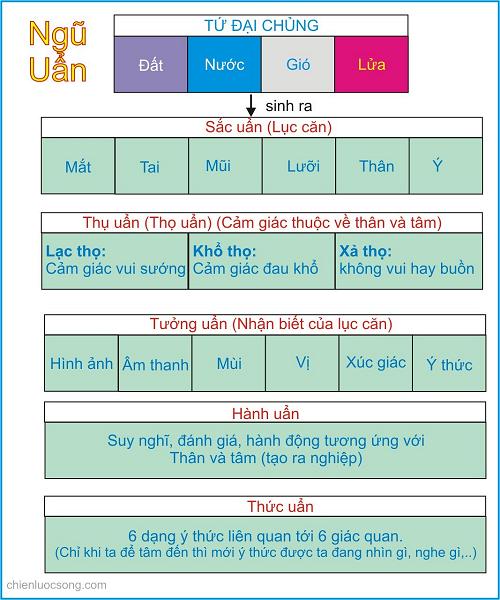 – Ngũ uẩn: bao gồm Sắc, Thọ, Tướng, Hành, Thức.