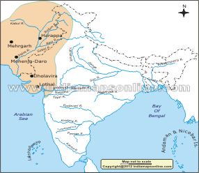 (Bản đồ khu vực di tích khảo cổ thuộc văn minh lưu vực sông Indus. nguồn: internet )